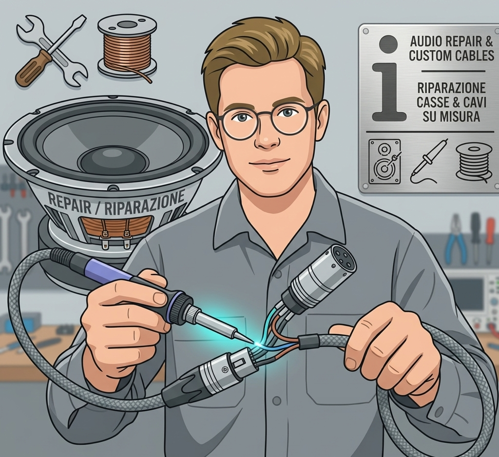 Progettiamo e costruiamo impianti audio su misura per ogni esigenza, Offriamo un servizio professionale di riparazione casse e realizziamo cavi personalizzati.